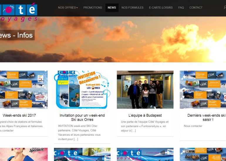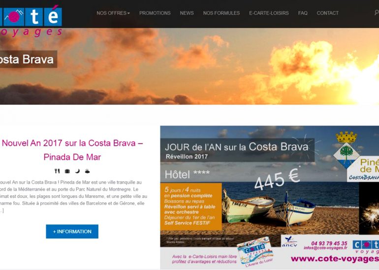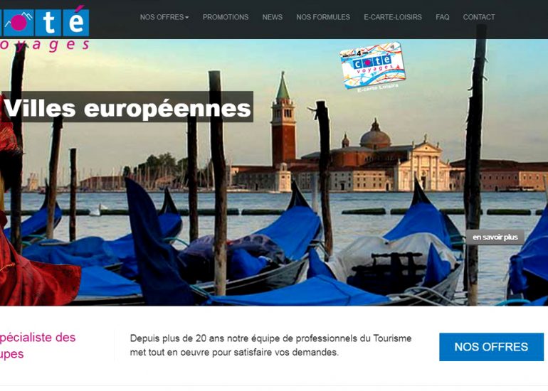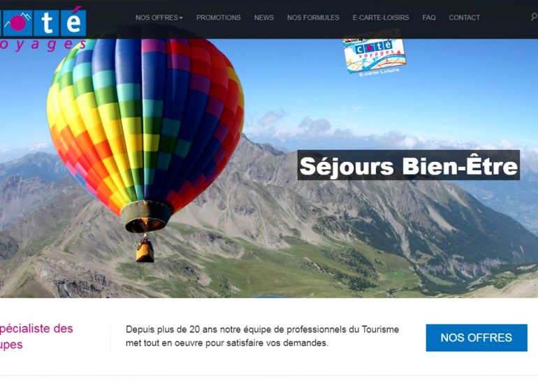 Création et réalisation du site "Responsive Design" de l'Agence de voyages Côté Voyages. Des vacances pleine de charme, tournée vers le bien-être.