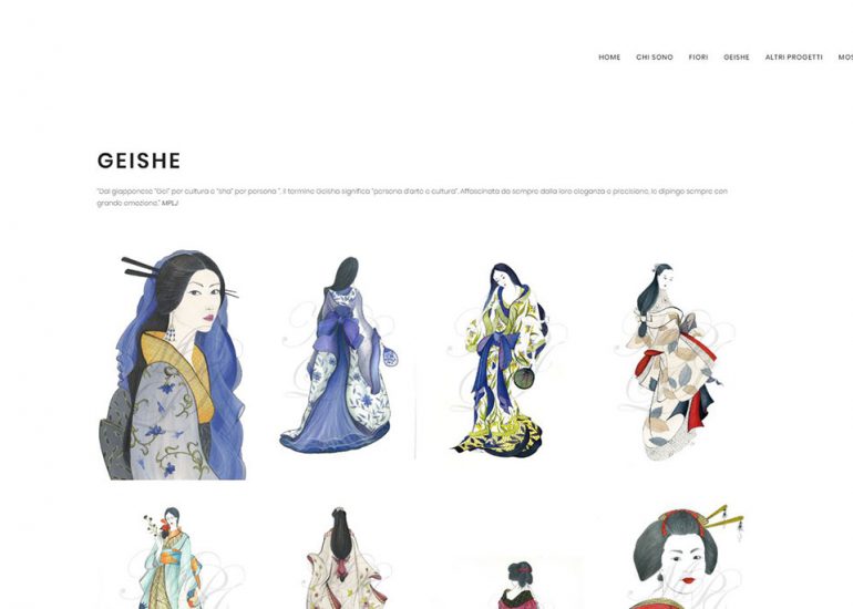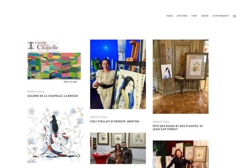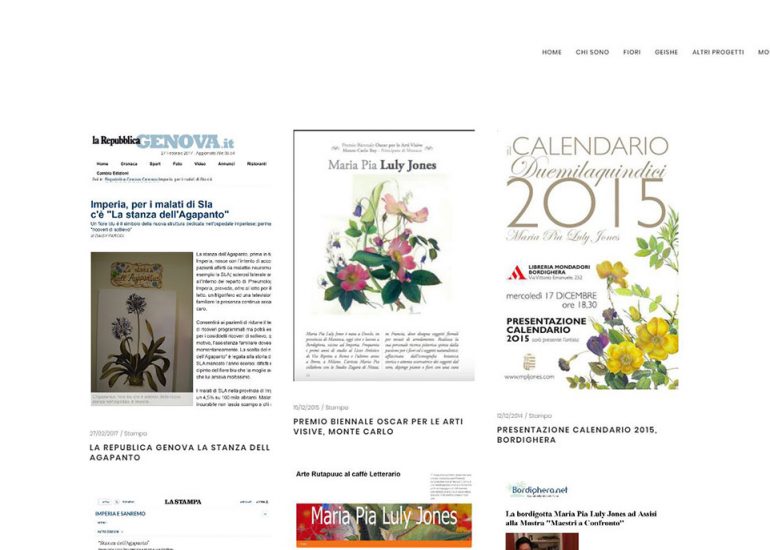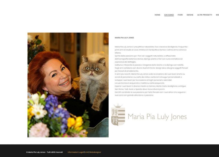 Création du site internet d'une artiste peintre italienne, Maria Pia Luly Jones, qui fait des peintures aquarelles et crayons de fleurs et Geishas, des décoration d'assiettes et des tissus d'ornement, entre autre. Elle donne des cours en Italie et en France et participe à de nombreuses expositions.
