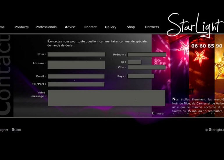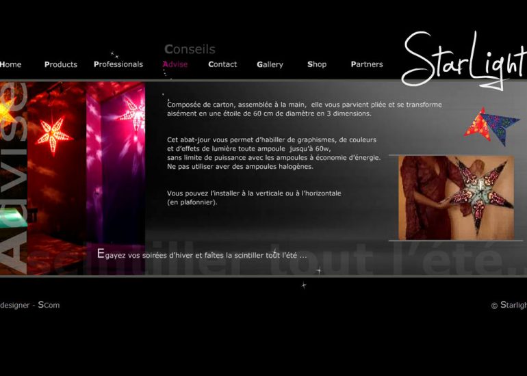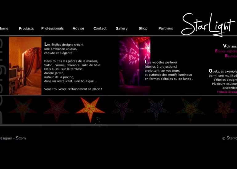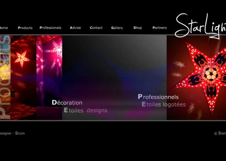 Star-Light est une entreprise artisanale qui propose d'illuminer votre quotidien avec des étoiles lumineuses décoratives qui ont un grand succès. Il propose une présentation de leur activité dans un site vitrine très design, à découvrir.